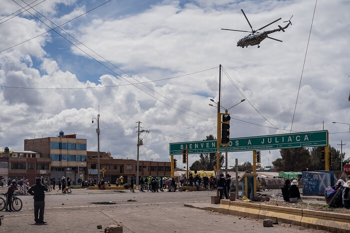 A poco más de un mes de protestas contra el gobierno de Dina Boluarte y el Congreso en diversos puntos del Perú, ayer la ciudad puneña de Juliaca registró —hasta las 9 p.m.— 17 personas fallecidas durante los enfrentamientos entre los manifestantes y efectivos de la Policía, según informó la Red de Salud San Román (Puno). Esta mañana, además, la Policía Nacional del Perú (PNP) reportó el hallazgo del cuerpo de un efectivo calcinado a una cuadra del Colegio San Martín, en la misma ciudad.
